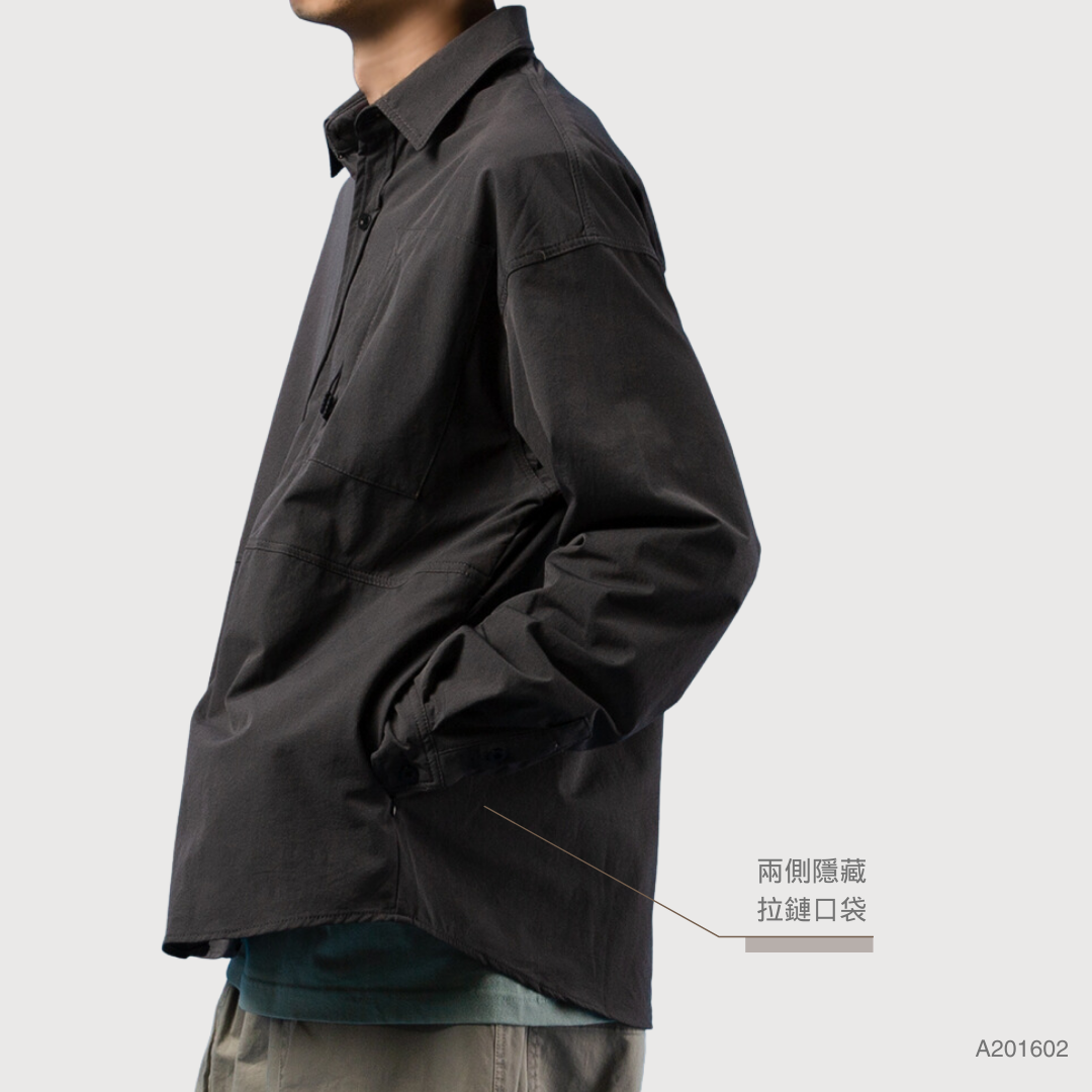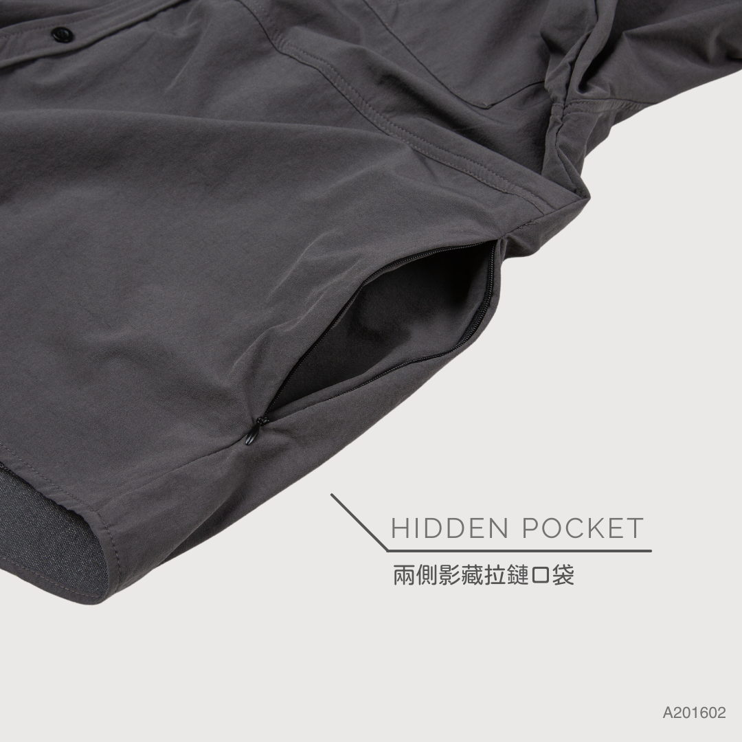 胸前與下擺隱藏拉鍊口袋設計,